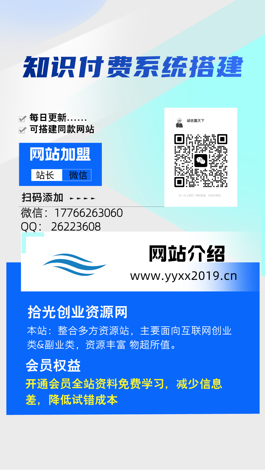 加盟XXX网创,加盟搭建同款知识付费资源网站,实现长期稳定被动收入~